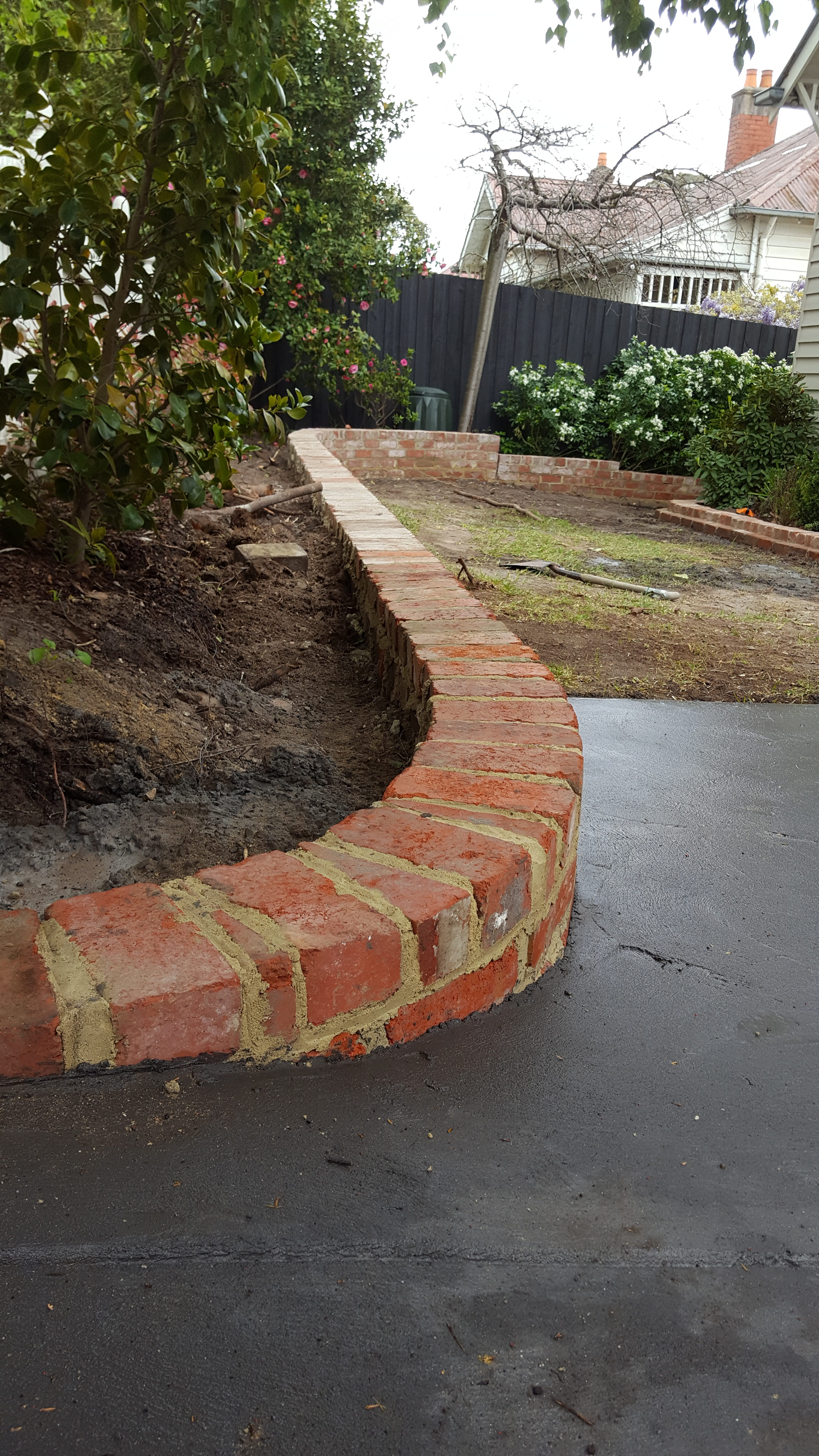 Landscaping with recycled bricks.